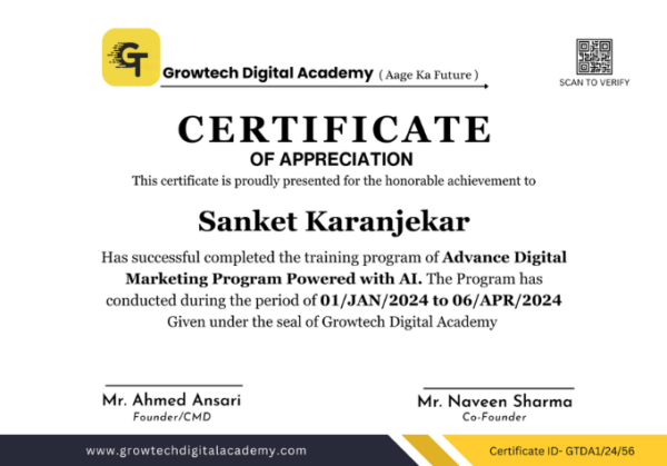 GrowTech Digital Academy is fantastic! The course content is up-to-date, instructors are experts, and the hands-on projects are super helpful. The platform is easy to use, and the certification is well-recognized. Highly recommend!